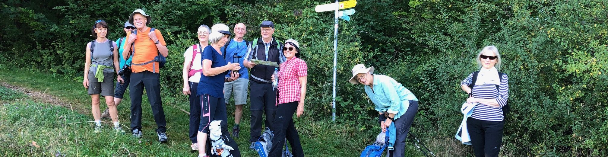 Goldene Spätsommertage hatte ein Dutzend Wanderer erwischt, die am letzten Donnerstag mit Wanderführer Ottmar Schweizer vom Beurener Brückle loszogen, um in drei Tagen nach Gammelshausen zu wandern. Über die Teufelsklinge ging es bei frischen Temperaturen auf die Kitzinger Ebene, und nach einem Blick in die Falkenhöhle über den Falkenberg nach Böhmenkirch mit einer ersten Rast in einer Bäckerei. An der Ulmer Linde vorbei führte der Weg zur Straußenfarm am Lindenhof, wo für einen Wochentag reger Betrieb in Café und Hofladen herrschte. Von hier war das Tagesziel Steinenkirch schon in Sichtweite und auch bald erreicht. Im Landgasthof Rössle wurde Quartier bezogen und ein leckeres Abendessen eingenommen. Am Freitag ging es ins Roggental hinunter und zwar durch das Magental, das auch bei trockener Witterung und mit quer liegenden Baumstämmen eine große Herausforderung darstellt. Dem Eybach entlang wanderten die Zwölf weiter nach Eybach, wo schon das Felsental mit anspruchsvollem Wiederaufstieg auf die Alb wartete.Schmale Traufgängerpfade führten weiter zur Mittagsrast auf der Ruine Helfenstein mit herrlicher Aussicht auf die Fünf-Täler-Stadt Geislingen. Im Zick-Zack stiegen die Wanderer nach Geislingen hinunter, um sich ein leckeres Eis zum Nachtisch zu gönnen. Doch kein Abstieg ohne Aufstieg; auf der anderen Talseite führte der Weg wieder hoch Richtung Ostlandkreuz, allerdings nicht ganz, denn auf halber Höhe ging es durch den Wald und durch Streuobstwiesen nach Bad Überkingen. Manche haben noch die dortige Therme genutzt, bevor es zum Abendessen in das Gasthaus „Hohe Schule“ und anschließend ins Quartier „Badhotel“ ging. Auf der Königsetappe am dritten Tag wanderten die Ausflügler zunächst auf der ehemaligen Bahntrasse nach Hausen, bevor es dort über einen Wiesenweg gemächlich nach oben ging mit Ausblick ins obere Filstal und auf die Hausener Wände. Beim Passieren der Wacholderheide strahlten viele Herbstastern und Enziane mit ihren Blautönen um die Wette. Nach dem Hexensattel dann die große Herausforderung: denn auf den Haarberg ging es nicht nur steil, sondern auch voll der Sonne ausgesetzt hoch. Doch der schöne Ausblick ins Goißatäle entlohnte wieder einmal. Zum Glück führte der weitere Weg durch den Wald zum Wasserberg, wo sich eine herrliche Aussicht auf die Voralb und die drei Kaiserberge eröffnete. Nach der letzten Mittagsrast im Wasserberghaus mussten die Wanderer wieder einmal feststellen, dass die Traufgängerwege nicht nur eben sind, denn bevor der Weg auf das 780 m hohe Fuchseck hinauf führte, ging er erst einmal steil zum Gairensattel hinunter. Doch auch dieser Aufstieg wurde mit einer prächtigen Aussicht belohnt, die über Göppingen und den Schurwald bis zum Nordrand des Remstals reichte. Nachdem beim Fuchseck der höchste Punkt der Wanderung erreicht war, ging es zur Freude der Ausflügler zum Ziel jetzt nur noch bergab. Nach einem schönen Aussichtspunkt mit Panoramablick oberhalb Gammelshausen war der Ochsen in der Ortsmitte dann auch bald erreicht. Sehr zur Freude der erschöpften Wanderer hatten die freundlichen Wirtsleute und die Speisekarte für jeden Geschmack etwas zu bieten. Nach ausgiebigem Genuss von „Ochsenfutter“ mit und ohne Fleischbeilage und einem „Dankeschön“ für die interessanten Wanderstrecken und die perfekte Vorbereitung mit Gepäcktransport und Rückholung ging es mit zwei Kleinbussen wieder zurück in die Heimat. Ein besonderer Dank gilt den Fahrern Thomas Schneidmüller, Peter Stadtmüller, Hans Sehner und Gerhard Deininger für Gepäcktransport und Rückholung.