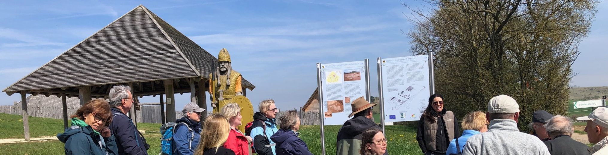 Am letzten Samstag hatten wir Gelegenheit, an einer offenen Führung teilzunehmen, die Katja Baumgärtner für die Gesellschaft für Archäologie angeboten hat. Es war ein Intensivkurs zu den Kelten, die vor über 2000 Jahren unsere Heimat bewohnten und reichlich Spuren hinterlassen haben. Zuerst im neuen Ipfmuseum im historischen Seelhaus hat uns Katja mit ihrem großen Fachwissen an Hand der ausgestellten Fundstücke in die Welt der Kelten entführt und in der Freilichtanlage am Fuß des Ipf eine Vorstellung von deren Bauten vermittelt. Bei der anschließenden Besteigung des Gipfelplateaus wurde das ganze Ausmaß der Wallanlagen sichtbar. Eine herrliche Aussicht ins Ries und auf das Härtsfeld belohnte für die Mühen des Aufstiegs. Ein ganz besonderer Dank gilt Katja für ihr großes ehrenamtliches Engagement in der Archäologie und ihrer Vermittlung.